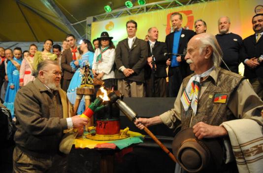 Coube aos dois tradicionalistas acender a pira que, a partir de agora, será resguardada 24 horas por dia, até 20 de setembro, por integrantes de piquetes e entidades gauchescas presentes no parque.
