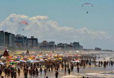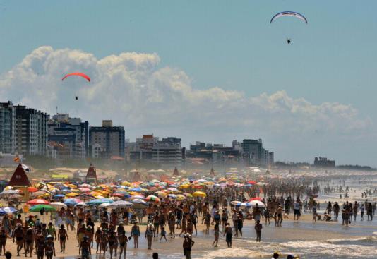 Em Tramandaí, não foi diferente. Desde o final da manhã, a faixa de areia na área central da praia é preenchida por um grande número de pessoas interessadas em aproveitar a tarde ensoladade deste domingo de Carnaval.