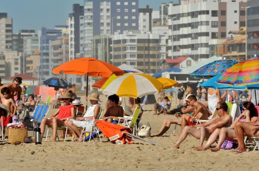 A segunda-feira começou com céu azul e sol forte no litoral norte do Estado. Desde as primeiras horas da manhã, famílias já fincavam guarda-sóis e abriam cadeiras na areia de Capão da Canoa. A bandeira é amarela e a água do mar está fria.