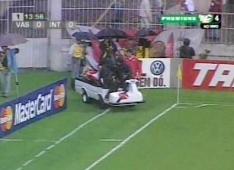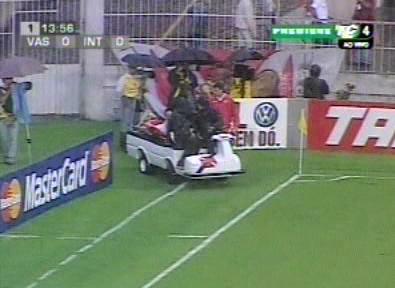 Sorondo saiu do gramado de maca. A gravidade da lesão será avaliada pelo departamento médico do Inter.