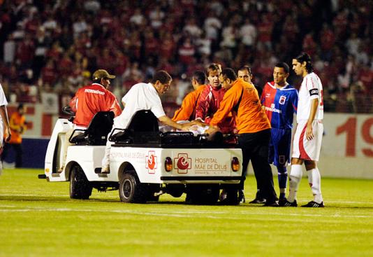 Logo aos dois minutos de partida, em disputa de bola aérea, o zagueiro Índio bateu com o ombro no rosto de Jonas. O jogador deixou o campo para a entrada de Sidnei.