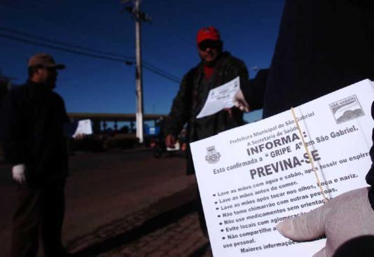 A Secretaria Municipal de Saúde de São Gabriel começou, na manhã desta quinta-feira, a distribuição de folhetos informativos sobre a prevenção da gripe A. Usando máscaras, as equipes se concentraram na entrada da cidade em pontos mais movimentados do Centro, como o Calçadão e a Praça Fernando Abbott.