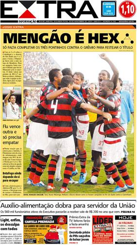 O jornal popular Extra deixou de lado qualquer tipo de cautela e, diante desta situação, definiu o campeão em manchete antecipada: "Mengão é Hexa". A capa diz ainda que, para o Flamengo ser campeão, "basta vencer o Grêmio, que virá ao Maracanã com os reservas". Em sua versão online, o Extra