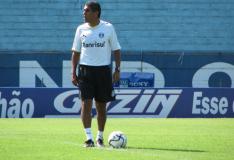 A tendência contra o São Luiz é time titular, o mesmo do Gre-Nal, talvez com mudança de esquema. O treinador gremista concede entrevista coletiva depois do treino.