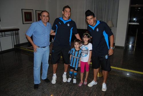 Os jogadores Douglas, Ferdinando, Edílson, Victor e o técnico Silas atenderam aos gremistas, que tiraram fotos e ganharam autógrafos de seus ídolos.