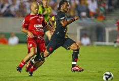 seguia assustando com a dupla Somália e Lucio. Já aos 40 minutos, Ernani teve a chance clara do empate após passe de Carlos Alberto, mas inexplicavelmente mandou a bola sem nenhuma direção.