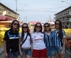 As amigas Paula Ceresoli, Leila Cantelli, Angélica Piva, Jéssica Domeneghini e Juliana Caprara, todas de 20 anos, saíram às ruas para torcer no Gre-Nal