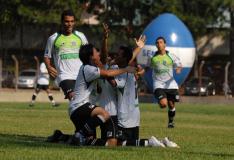 Jogadores do Figueira comemoram a goleada sobre o Juventus em Jaraguá do Sul