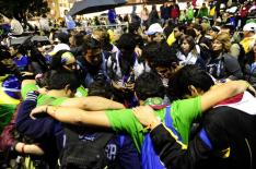 Quando uma menina caiu no chão e sua mãe pediu, por favor, que cessassem os encontrões, cerca de 10 paraguaios pararam no meio da rua, se abraçaram por cima dos ombros e iniciaram uma Ave Maria. O tumulto foi se aquietando - e os paraguaios foram aplaudidos.