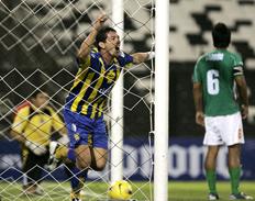 Jogador do Luqueño comemora um dos gols da vitória sobre o Audax no primeiro turno