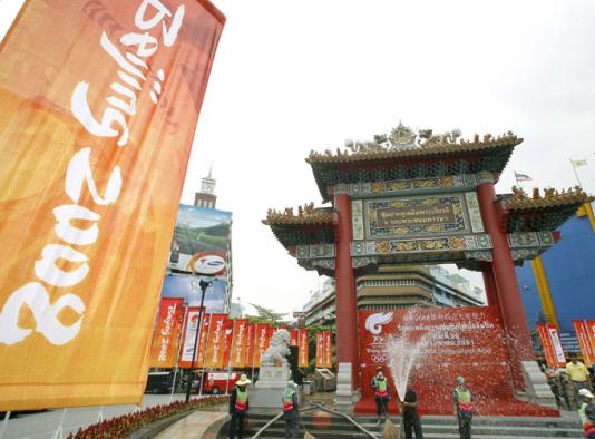 Após passar por Paquistão e Índia, a tocha dos Jogos Olímpicos de Pequim 2008 desembarcou na noite desta quinta-feira em Bangcoc, na Tailândia, próxima etapa do revezamento no continente asiático.