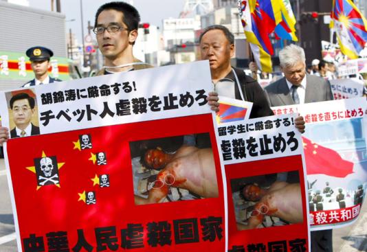 Ativistas pró-Tibete saíram às ruas de Nagano nesta sexta-feira, no norte do Japão, para protestar contra a China. No sábado, a cidade japonesa será palco do revezamento da chama olímpica, que já está no país. Faixas erguidas pelos manifestantes estampavam frases como: “China, nação genocida”.