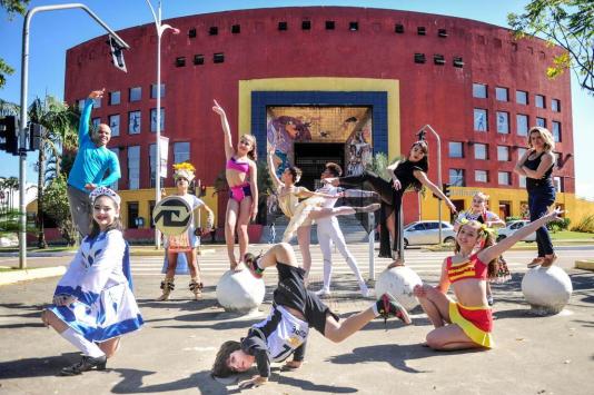 Representantes de diferentes grupos joinvilenses que vão participar do Festival deste ano posaram em um dos palcos da dança para ilustrar esta reportagem