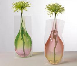 Imagine um vaso dobrável. Parece irreal? Pois não é. O escritório japonês de design D-Bros criou um modelo de vaso de vinil, que é firme o bastante para, cheio de água, sustentar a flor, mas ao mesmo tempo é maleável o suficiente para ser guardado no espaço de uma caixa de papelão desmontada.
