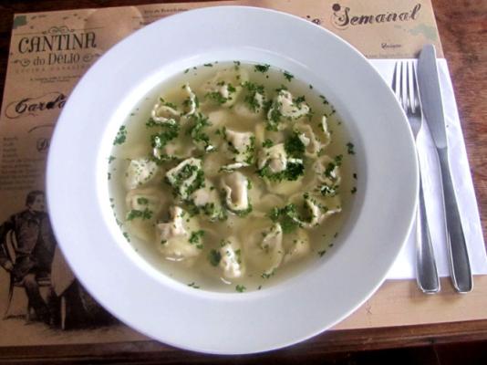 Já o restaurante Cantina do Délio adotou um prato típico do inverno para agradar os clientes: está servindo um caldo com capelete, ou Capeletti in Brodo, feito com uma delicada massa caseira recheada com carne bovina, suína e presunto de Parma, à R$ 16,20.