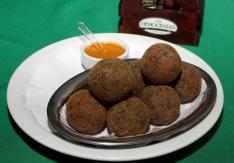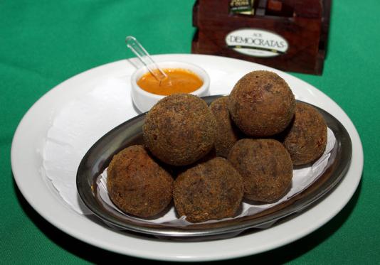 :: E que tal utilizar o prato típico brasileiro dentro de um bolinho? Pois é! No Aos Democratas tem o Bolinho de Feijoada. Feito com massa de feijão preto e recheado com couve, bacon e calabresa, a iguaria ganha mais sabor ainda melhor com um molho de pimenta. A porção sai por R$ 15,90.