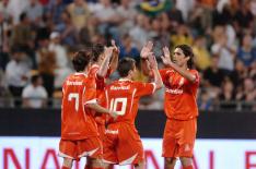 Antes de chegar ao gol, o Inter também teve duas boas oportunidades – ambas no contra-ataque. De modo geral, o Colorado conseguiu trocar passes, teve bom posicionamento e valorizou a posse de bola para se valer de lançamentos em profundidade. Foi assim que Nilmar e Guiñazu apareceram na frente da área para arrematar, mas pela linha de fundo. Mas aos 30 minutos saiu o gol que decretou a vitória colorada nos Emirados Árabes sobre o atual campeão alemão.