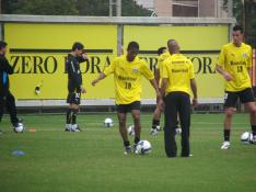 No começo do treino, os jogadores ficaram cerca de meia-hora fazendo uma roda de bobinho. Depois disto, os atletas continuaram em ritmo de brincadeira e foram divididos em equipes para um futevôlei. Encerrando as atividades, as finalizações foram exigidas pelo comandante.