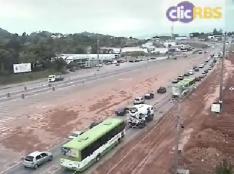 O trânsito foi desviado pela estrada geral do bairro Cacupé. Desde o início da manhã desta quarta-feira, há congestionamento nos dois sentidos da rodovia.