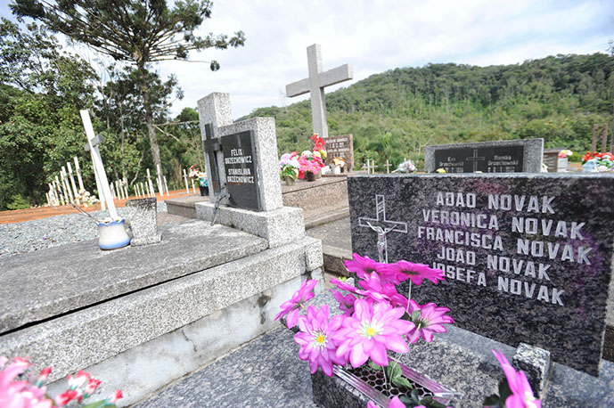 O cemitério da comunidade Treze de Maio Alto fica onde a primeira capela católica foi construída pelos imigrantes que habitavam o local