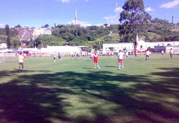 O técnico Abel Braga comandou um treino alemão em campo reduzido. Neste tipo de trabalho, os jogadores são divididos em três times, dos quais um sempre está fora do campo, posicionado nas extremidades. Quando a bola se aproxima, os que estão de fora podem participar do jogo.