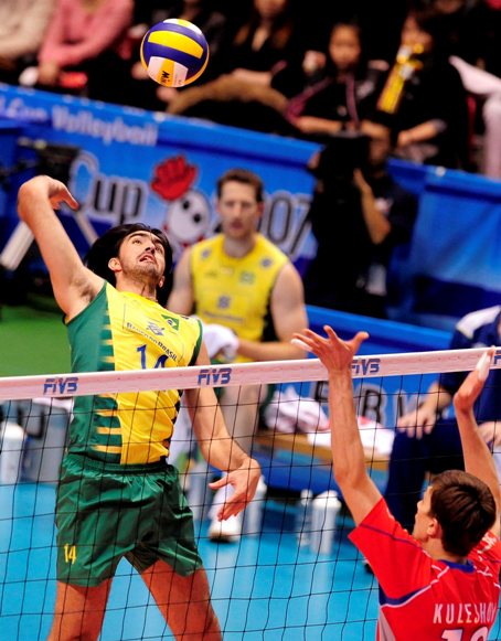 Depois de um início assustador, o Brasil mostrou as razões de ser o grande time do vôlei masculino mundial no momento, não tomou conhecimento da Rússia e garantiu a vaga nas Olimpíadas de Pequim-2008. Na manhã deste sábado, a seleção encaixou muito bem o saque e aproveitou o excesso de erros dos rivais para vencer os russos por 3 sets a 0, parciais de 25/22, 25/22 e 25/18, pela Copa do Mundo, que está sendo disputada no Japão.