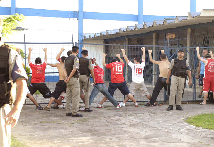 Era para ser só um jogo do Brasileirão Sub-20, mas terminou em briga fora de campo. No início do segundo tempo da vitória de 1 a 0 do Inter sobre o Paulista, ontem, no Estádio Passo D'Areia, uma abordagem da Brigada Militar a torcedores nas arquibancadas terminou em pancadaria. Dois deles foram detidos por desacato, desobediência e lesão corporal.