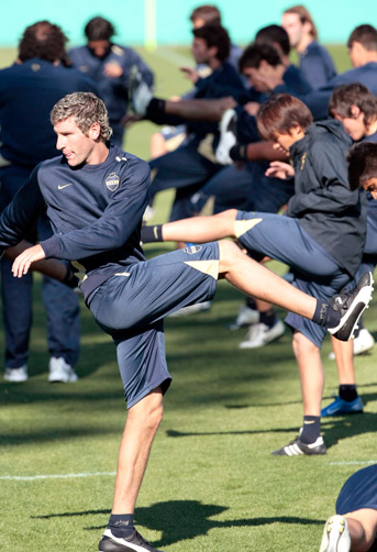 Com a presença de centenas de torcedores japoneses, os jogadores do Boca treinaram no Nishigaoka Football Field. No coletivo, os titulares ficaram no empate com o reservas em 1 a 1. O time, o de sempre, foi formado por Caranta; Ibarra, Maidana, Paletta e Morel Rodríguez; Álvaro González, Battaglia Banega e Vargas; Palacio e Palermo.