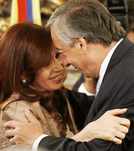 Vázquez acompanhou circunspecto as palavras da colega argentina e só aplaudiu quando Cristina enviou uma mensagem aos "compatriotas do Uruguai", assegurando que os argentinos "vão senti-los sempre como seus irmãos".