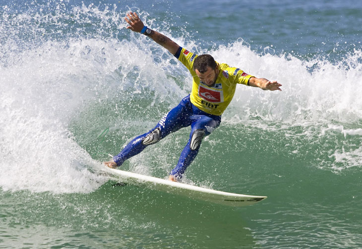 O surfista, que busca uma boa colocação na competição para se manter na elite do surfe mundial, dominou toda a oitava bateria do primeiro round, mas protagonizou uma situação crítica nos últimos minutos quando remou na mesma onda que Sunny Garcia, ex-campeão mundial e surfista local.