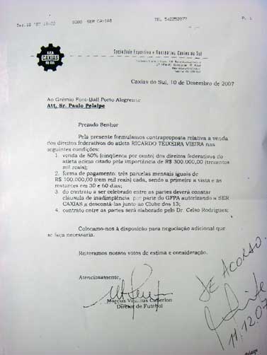 – O que nós temos aqui no Grêmio é uma contraproposta do Caxias, assinada pelo Marcus Vinícius Caberlon (diretor de futebol), dando as condições do atleta, e estamos de acordo. Acreditamos que a diretoria do Caxias é séria, e que o documento assinado por Caberlon tenha validade. Estamos acertados com o Caxias. Se ocorreu acerto com o Vasco, vai ser uma surpresa muito grande. Nós tínhamos acordado com o Caxias – avisa Pelaipe.