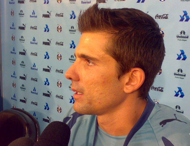 Provavelmente a última contratação do Grêmio em 2007, Victor mostra que está habituado com a rivalidade Gre-Nal e brinca: