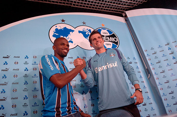 O goleiro Victor e o centroavante Tadeu foram apresentados oficialmente pelo Grêmio na tarde desta quarta Sala de Conferências do Estádio Olímpico. Vindos do Paulista e do Juventude, respectivamente, os jogadores chegam para se juntar ao time que em 2008 será comando por Vágner Mancini. O clube gaúcho ainda deverá fazer mais contratações.