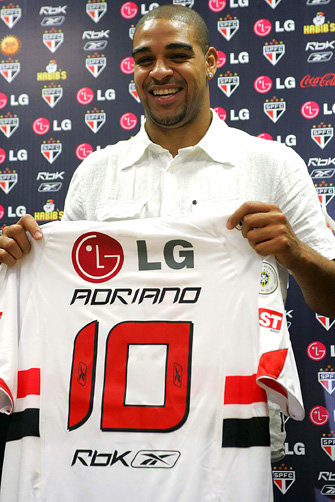 O atacante Adriano foi apresentado oficialmente nesta sexta-feira como jogador do São Paulo. Emprestado pela Internazionale de Milão, o jogador ficará por seis meses no Morumbi. É o tempo que ele acha necessário para “dar a volta por cima” e voltar a apresentar o bom futebol que o levou a Seleção.
