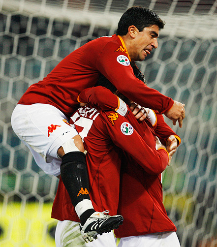 O primeiro saiu aos 18 minutos do primeiro tempo. Totti efetuou cobrança de pênalti com categoria, dando apenas um leve toque no meio do gol, enquanto o goleiro pulou para seu lado direito.