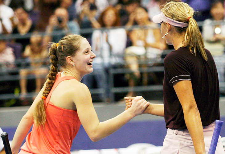 A russa Maria Sharapova venceu neste domingo sua compatriota Anna Chakvetadze por 2 sets a 0, parciais de 6/0 e 7/6 (12/10), em jogo exibição realizado em Cingapura.
