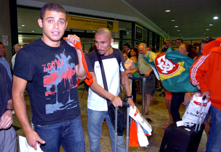 O meia argentino Guiñazu e o volante Edinho desembarcaram por volta da meia-noite desta quarta-feira no Aeroporto Internacional Salgado Filho, em Porto Alegre. Um dos destaques na conquista da Copa de Dubai, Guiñazu torceu o joelho na partida final, em lance envolvendo Maicon, lateral da Inter de Milão.