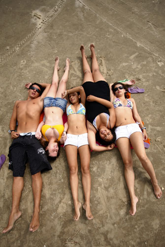 Até março, o compromisso deles é com a diversão. De férias do colégio e da faculdade, os irmãos Paula Trindade de Oliveira, 17 anos, e Cesar Trindade de Oliveira, 21 anos, as primas Patricia Berg Trindade, 24 anos, e Natália Ekaterina Trindade Fagundes, 17 anos, e a amiga Débora Carneiro, 16 anos, mudaram-se para o balneário Bom Jesus, em Arroio do Sal, e só querem saber de relaxar.