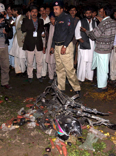 O mercado de Quaidabad foi destruído. Ele fica localizado na cidade portuária visitada hoje pelo presidente paquistanês, Pervez Musharraf.