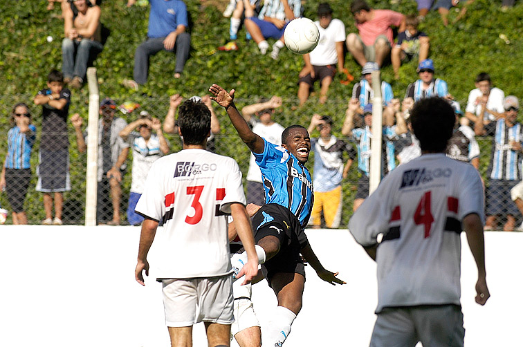 O São Paulo de Bento Gonçalves teve um pênalti a seu favor não marcado pela arbitragem e ainda chutou uma bola na trave do goleiro Victor.
