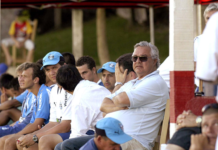 O presidente Paulo Odone, o diretor de futebol Paulo Pelaipe e o gerente executivo Rodrigo Caetano assistiram ao jogo-treino de ontem sentados em cadeiras de palha ao lado da casamata. O time conseguiu apenas uma vitória magra, por 1 a 0, contra o São Paulo de Bento Gonçalves. A cada vaia, era comum que um deles baixasse a cabeça. Em coro, a torcida pediu: