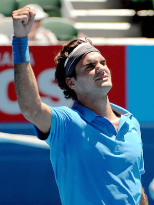 As 62 participações em Grands Slams do francês Fabrice Santoro, recorde mundial, não foram suficientes para deter o suíço Roger Federer, número 1 do mundo, que avançou para a terceira rodada com uma vitória contundente no Aberto da Austrália: 6-1, 6-2 e 6-0.