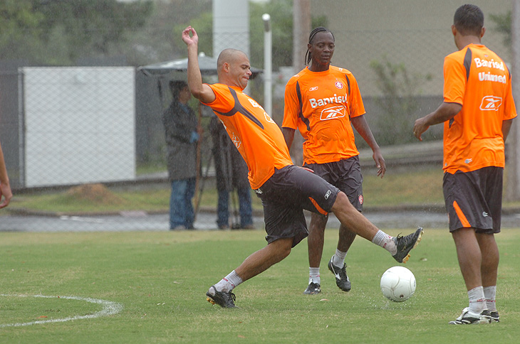 No treino desta manhã, Abel comandou um trabalho abaixo de forte chuva no gramado suplementar do Beira-Rio, no qual dividiu o grupo em três times que se revezaram em situações de ataque e defesa.