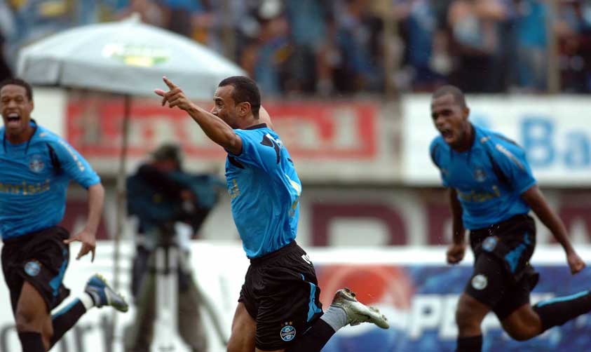 goleiro André, do Caxias, André Luís marca de carrinho 2 a 0 para o Grêmio. Logo após, aos 33, ele quase marca mais um, mas a bola bate na trave na saída do goleiro e Adílson não aproveita o rebote