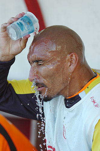Lembra aquela propaganda em que o sujeito, no calor do deserto, provoca a sede comendo batata frita até não agüentar mais só para aumentar o prazer de tomar o refrigerante gelado até a última gota? É mais ou menos essa a lógica que faz Guiñazu treinar de moletom com o sol fritando o termômetro a 36,5ºC, como na tarde desta quinta.