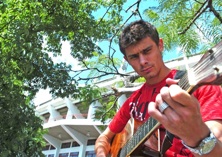 Alex aprendeu a tocar violão depois que veio para o Inter, para enfrentar os longos períodos em recuperação de lesões