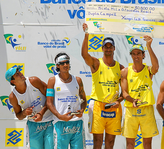 Numa final emocionante, decidida no set desempate pela diferença mínima de dois pontos, Ricardo e Emanuel bateram Pedro Solberg e Harley por 2 a 1 (20/18, 13/18 e 15/13) e conquistaram a etapa de abertura do circuito brasileiro de vôlei de praia de 2008. A decisão levantou as arquibancadas da arena de Xangri-Lá, litoral norte do Rio Grande do Sul, pelo excelente nível técnico e alternância das equipes no placar. Franco e Pedro Cunha ficaram em terceiro com a vitória sobre Adriano e Fabiano por 2 a 0 (20/18 e 18/13).