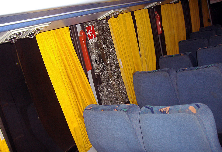 O incidente aconteceu às 21h. Além dos tiros, uma pedra foi arremessada. As agressões, que deixaram marcas na lataria, no estofamento e nos vidros do ônibus, foram cometidas por dois homens que estavam na rodovia RS-122. Uma jovem integrante da torcida ficou ferida com os estilhaços dos vidros.