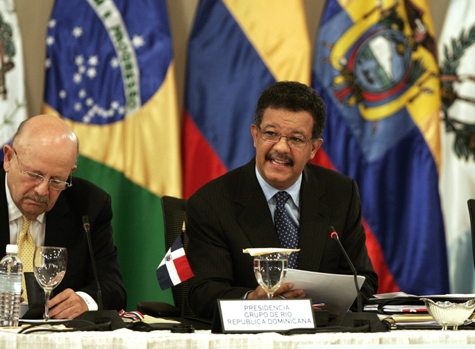 O presidente dominicano pretende chegar a um consenso para a aprovação de uma declaração sobre o conflito gerado pelo ataque de forças militares colombianas a um acampamento das Forças Armadas Revolucionárias da Colômbia (Farc) em território equatoriano, no fim de semana passado.