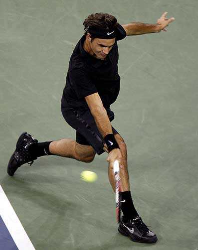 Recém-recuperado de uma virose, o suíço Roger Federer frustrou a torcida que foi a Nova York e derrotou o norte-americano Pete Sampras por 2 sets a 1, com parciais de 6/3, 6/7 (4-7) e 7/6 (8-6), na noite desta segunda-feira.